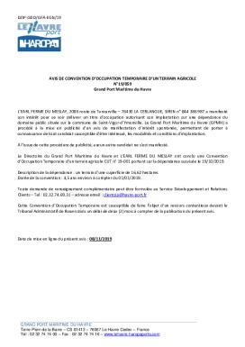 Avis de convention doccupation temporaire d'un terrain agricole - N°19/059
