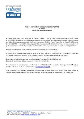 AVIS DE CONVENTION DOCCUPATION TEMPORAIRE N°20/038 Grand Port Maritime du Havre