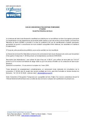 AVIS DE CONVENTION DOCCUPATION TEMPORAIRE N°20/050 Grand Port Maritime du Havre
