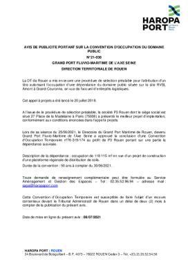 Avis de publicité portant sur la convention d'occupation du domaine public n°21-038