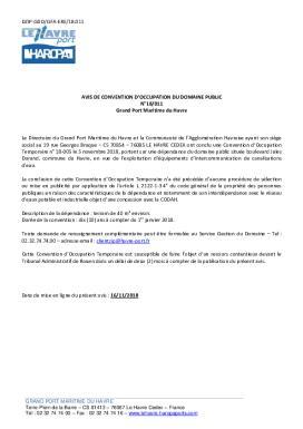 Avis d'occupation du domaine public N°18/011 - Grand Port Maritime du Havre