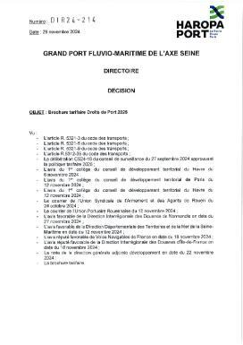 Décision brochure tarifaire droits de port 2025