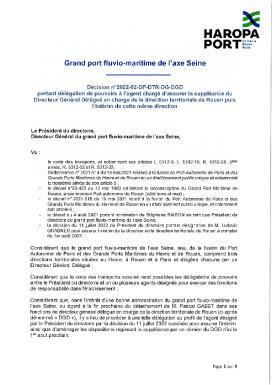 Décision n°2022-02-DP-DTR-DG-DGD - Portant délégation de pouvoirs à l'agent d'assurer la suppléance du DG de la DTR