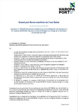 Décision n°2023/05 DG portant modification de la délégation de signature à M. Antoine BERBAIN, Directeur Général Délégué en charge de la direction territoriale de Paris
