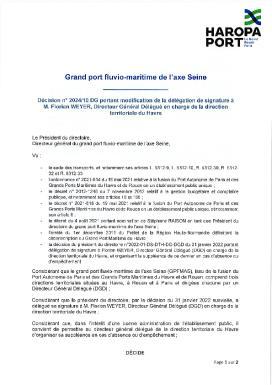 Décision n°2024/10 DG du 03/07/24 portant modification de la délégation de signature au DGD en charge de la direction territoriale du Havre