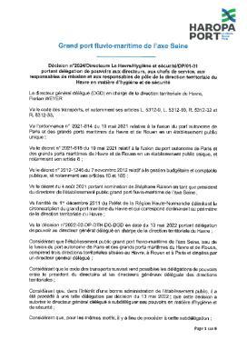 Décision n°2024/Directeurs Le Havre/Hygiène et sécurité/DP/01-01 portant délégation de pouvoirs aux directeurs, aux chefs de service, aux responsables de mission et aux responsables de pôle de la direction territoriale du Havre