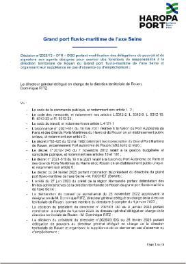 portant modification des délégations de pouvoir et de signature aux agents désignés pour exercer des fonctions de responsabilité à la direction territoriale de Rouen du Grand port fluvio-maritime de l’axe Seine et organisant leur suppléance en cas d’absence ou d’empêchement