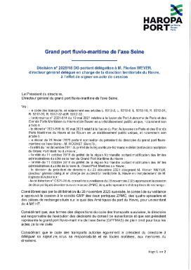 Décision n°2025/18 DG portant délégation à M. Florian WEYER, directeur général délégué en charge de la direction territoriale du Havre, à l'effet de signer un acte de cession.