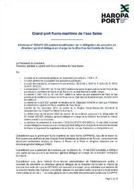 la Décision n°2024/11 DG du 26/07/24 portant modification de la délégation de pouvoirs au DGD en charge de la DT Le Havre