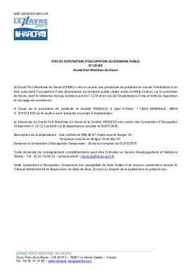 N°19/105 - Avis de convention d'occupation du domaine public - Grand Port Maritime du Havre