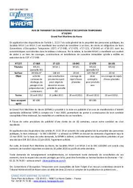 N°20-049 - Avis de transfert de conventions d'occupation temporaire - Grand Port Maritime du Havre