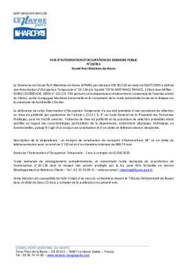 N°20-053 - Avis d'autorisation d'occupation du domaine public - Grand Port Maritime du Havre