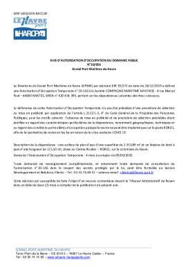 N°20-056 - Avis d'autorisation d'occupation du domaine public - Grand Port Maritime du Havre
