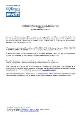 N°20-057 - Avis d'autorisation d'occupation du domaine public - Grand Port Maritime du Havre