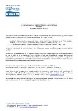 N°20-061 - Avis d'autorisation d'occupation du domaine public - Grand Port Maritime du Havre
