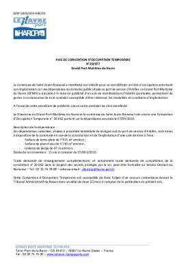 N°20-077 - Avis d'autorisation d'occupation du domaine public - Grand Port Maritime du Havre