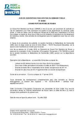 N°20/002 - Avis de convention doccupation du domaine public - GRAND PORT MARITIME DE ROUEN