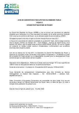 N°20/013 - Avis de convention doccupation du domaine public - GRAND PORT MARITIME DE ROUEN