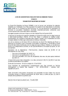 N°20/015 - Avis de convention doccupation du domaine public - GRAND PORT MARITIME DE ROUEN