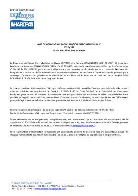 N°20/152 - Avis de convention doccupation du domaine public - Grand Port Maritime du Havre