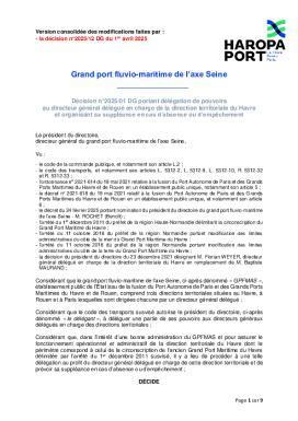 Version consolidée au 1er avril 2025 de la Décision n°2025/01 DG du 26 février 2025 portant délégation de pouvoirs au directeur général délégué en charge de la direction territoriale du Havre
