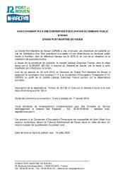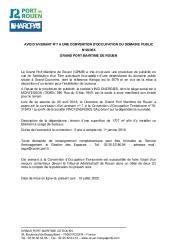 N°20/014 - Avis de convention doccupation du domaine public - GRAND PORT MARITIME DE ROUEN 1 documentPublié le 16/07/2020